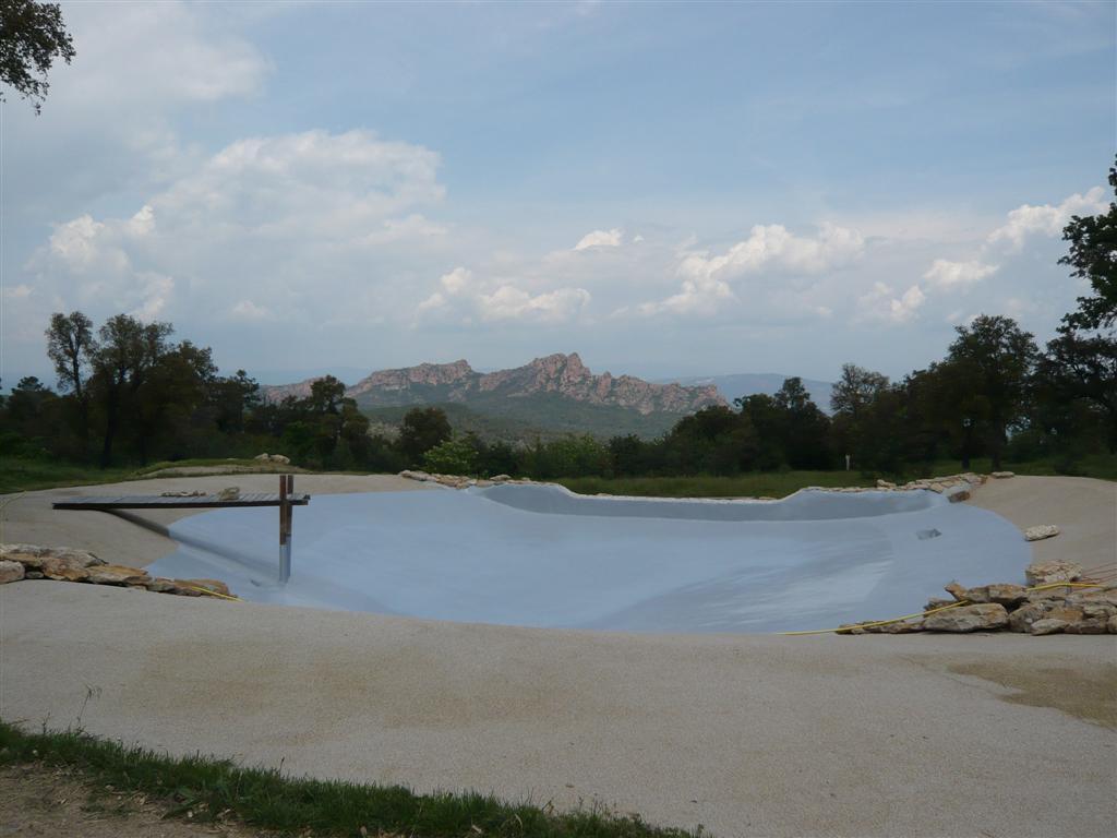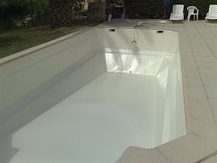 Vous êtes nombreux à demander ce que peut représenter l'aspect de l'eau selon le choix de la couleur de finition (topcoat). Difficile de le dire; cela varie en fonction de la taille de la piscine, sa profondeur, sa situation, son environnement, du temps qu'il fait....