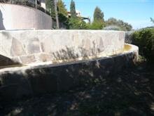 - Un bac de débordement (ou déversoir) présentant d'importantes fuites. Sa particularité est d'être recouvert d'une magnifique pierre de Bormes. Nous avons délimité le problème esthétique et réglé son étanchéité avec notre polyester armé. Cet exemple montre que nous pouvons agir ponctuellement sans toucher au grand bassin.