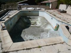 Ancienne piscine béton mosaiques trés dégradée