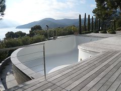 Piscine en béton silico marbreux avec bandeau mosaiques